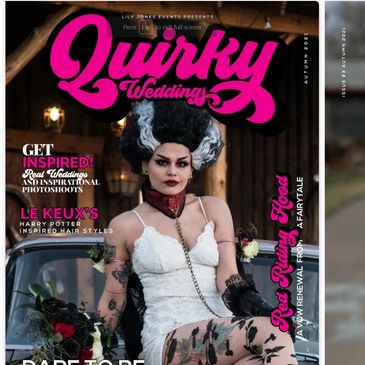 Print/Blogs: Cover of Quirky Weddings Magazine 2021, Offbeat Bride, Rock N Roll Bride,